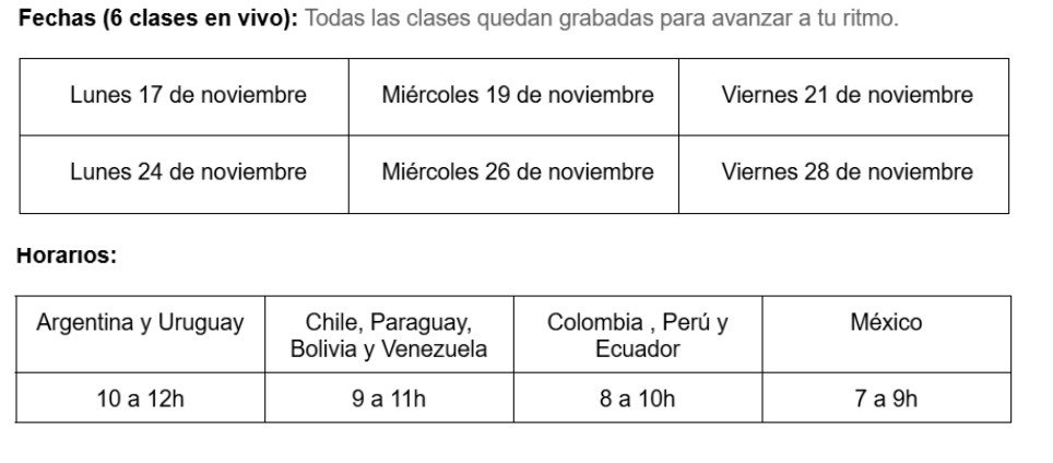 ✅ Grabaciones de todas las clases para estudio asincrónico