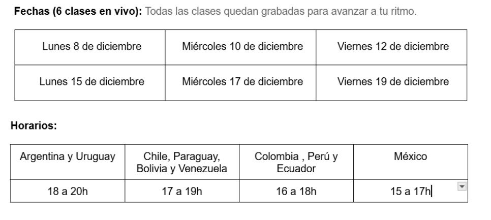 ✅ Grabaciones de todas las clases para estudio asincrónico